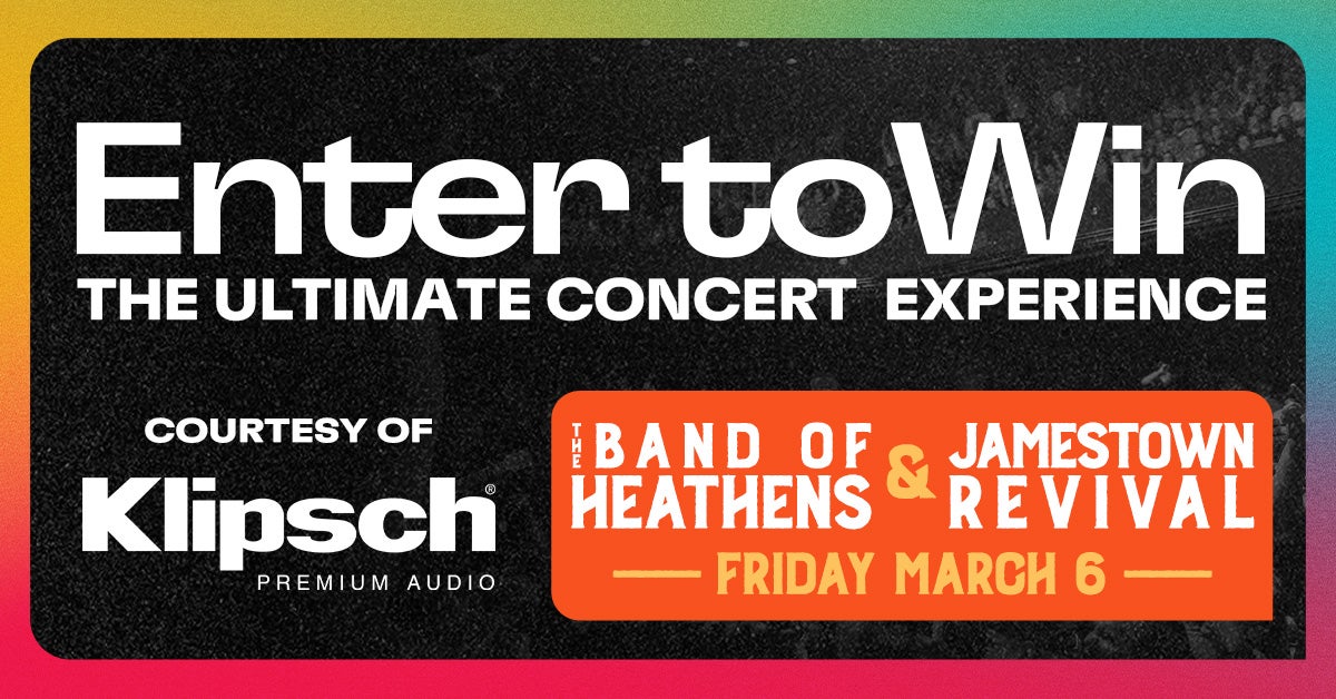 Austin-based favorites The Band of Heathens and folk duo Jamestown Revival take the stage at ACL Live at The Moody Theater on March 6—and you (+1) could be there. We’re teaming up with Klipsch Premium Audio, ACL Live’s official partner for the Ultimate Concert Experience and more, to give one lucky winner an Austin-style live music night to remember.